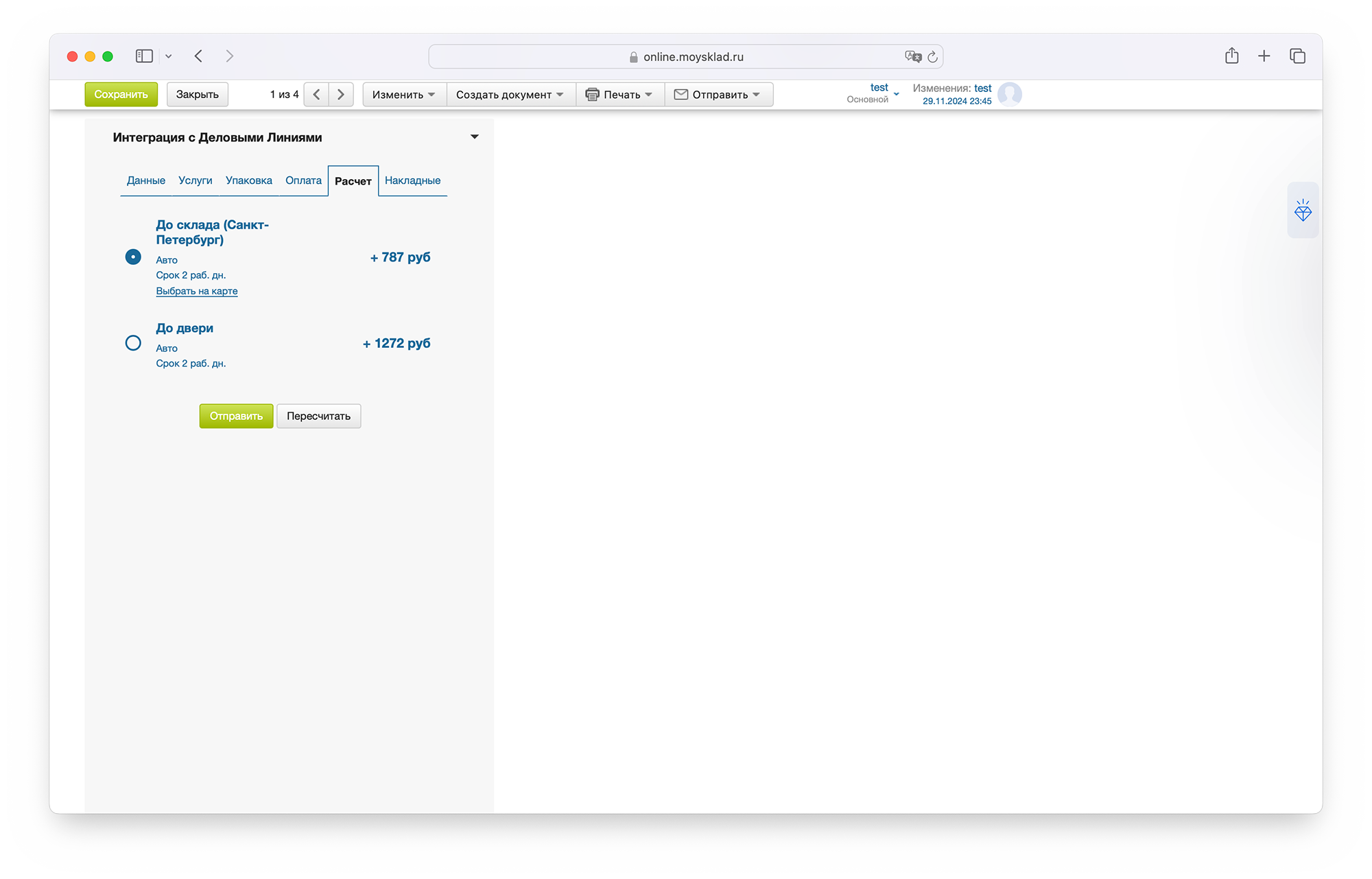 Позволяет быстро оформлять накладные Деловые Линии в МоемСкладе