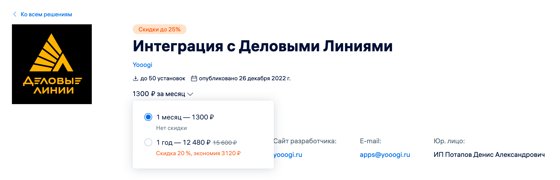 При оплате на год предоставляется скидка 20% (12480 ₽ в год)