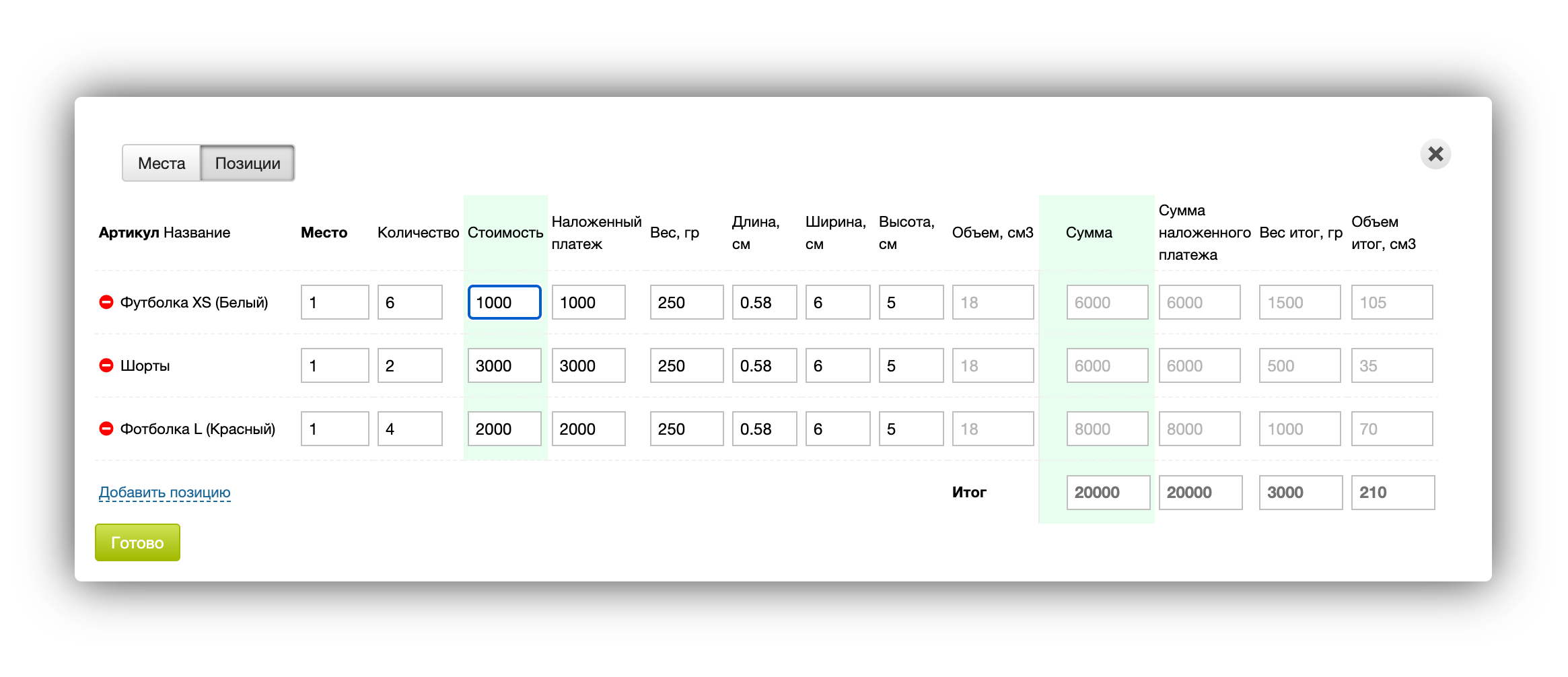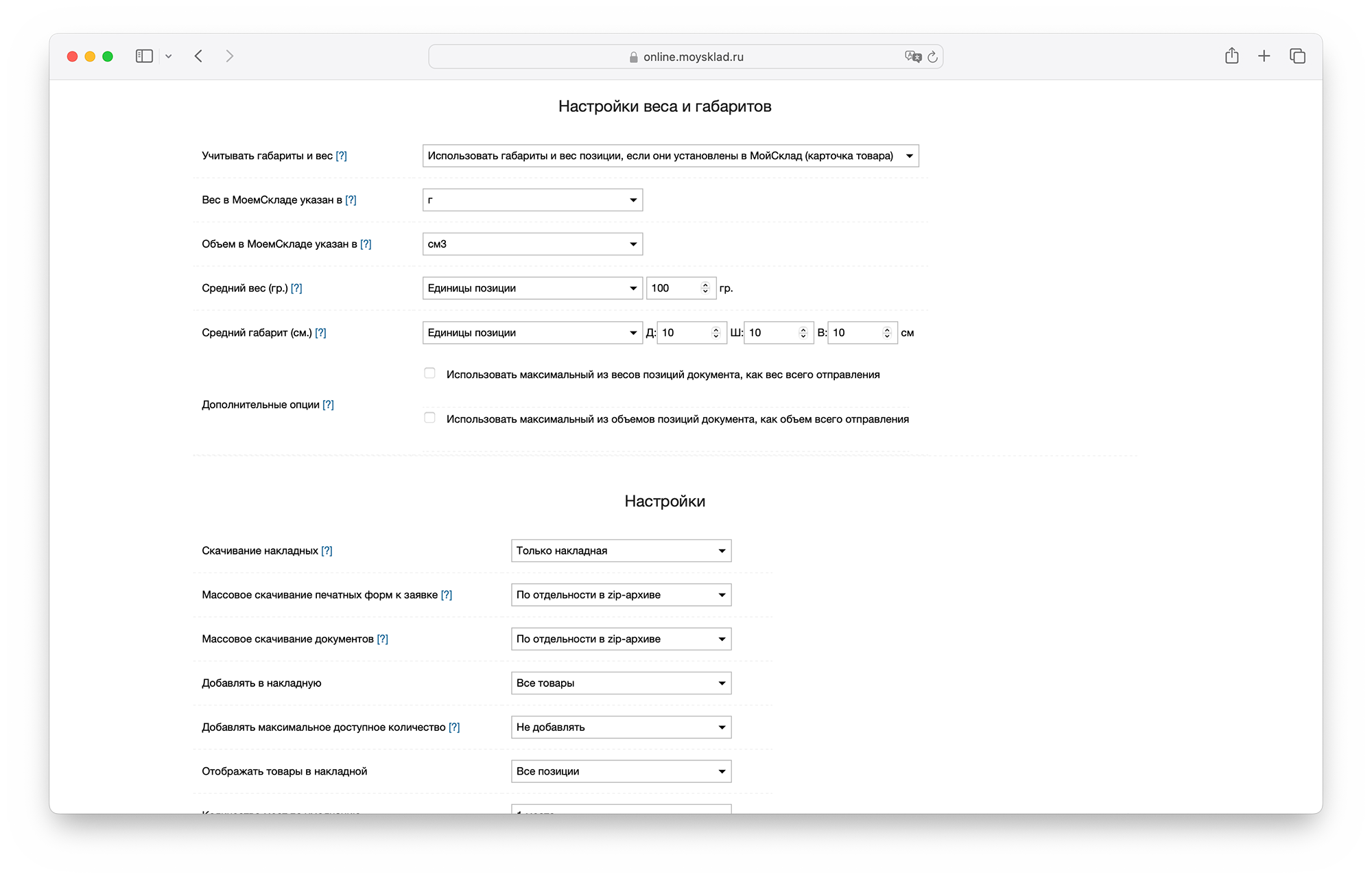 Приложение автоматически получает всю необходимую информацию из Заказа покупателя или Отгрузки: имя, телефон, адрес получателя, список и габариты товаров. Вам остается лишь нажать на кнопку и получить результат!