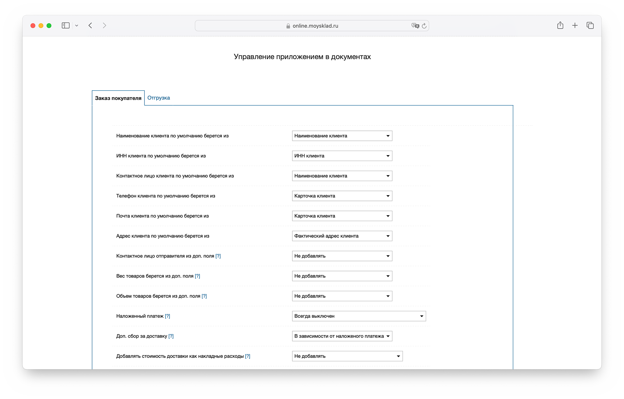 • автоматическое определение города доставки из адреса заказа или отгрузки