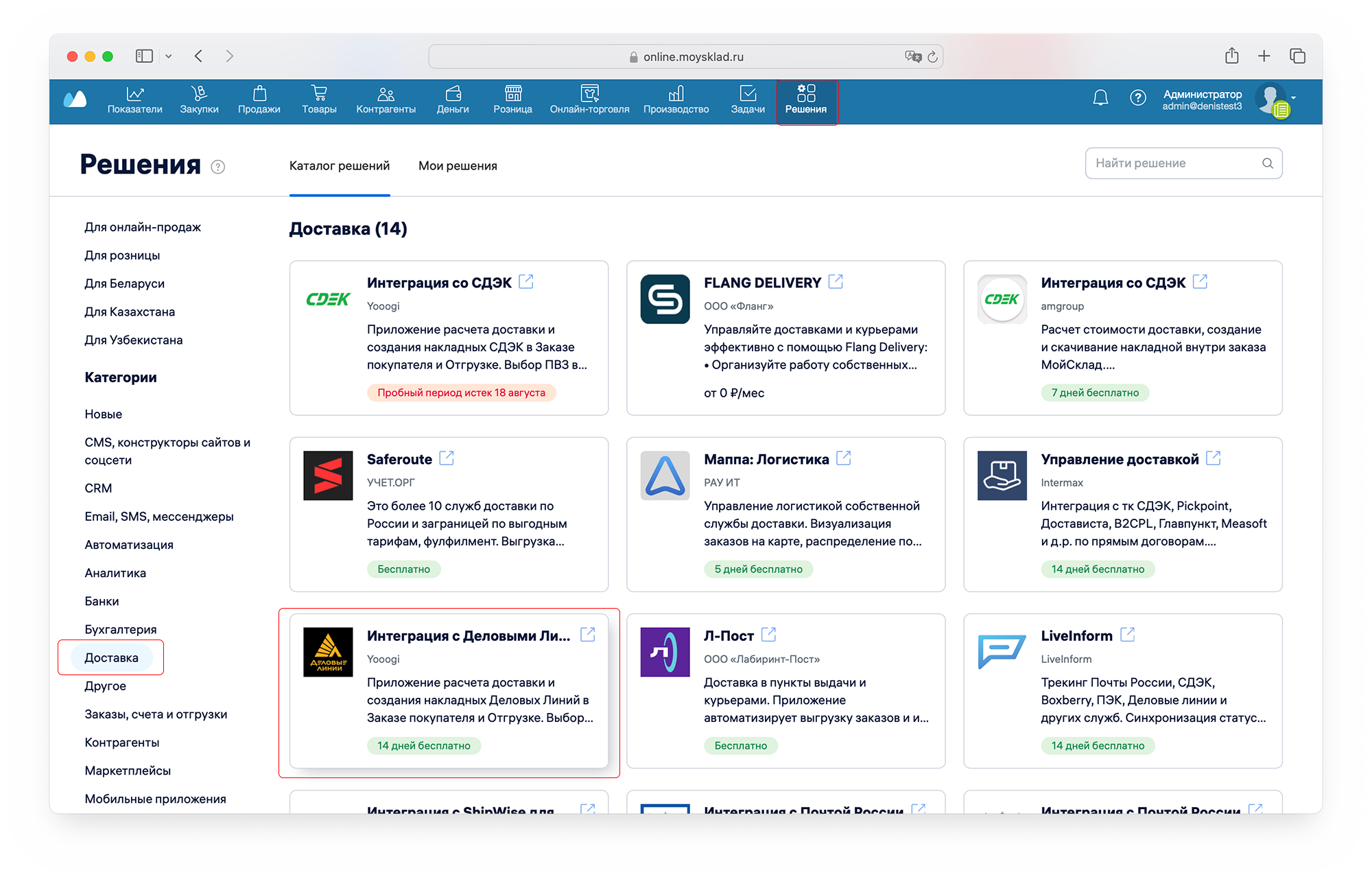 Перейдите на страницу решений, выберите подраздел "Доставка"