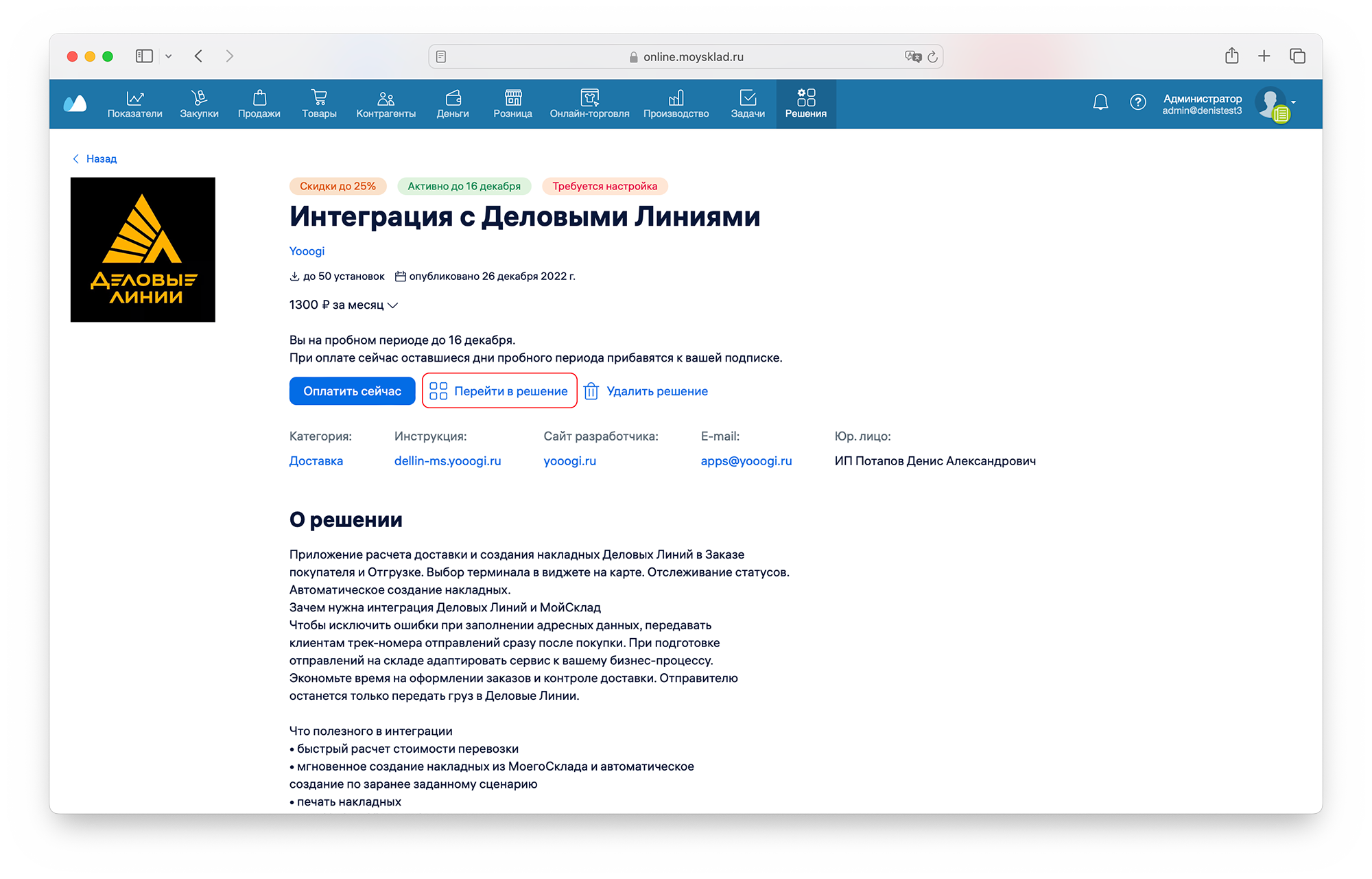 На открывшейся странице нажмите "Перейти в решение" и следуйте инструкции по настройкам интеграции