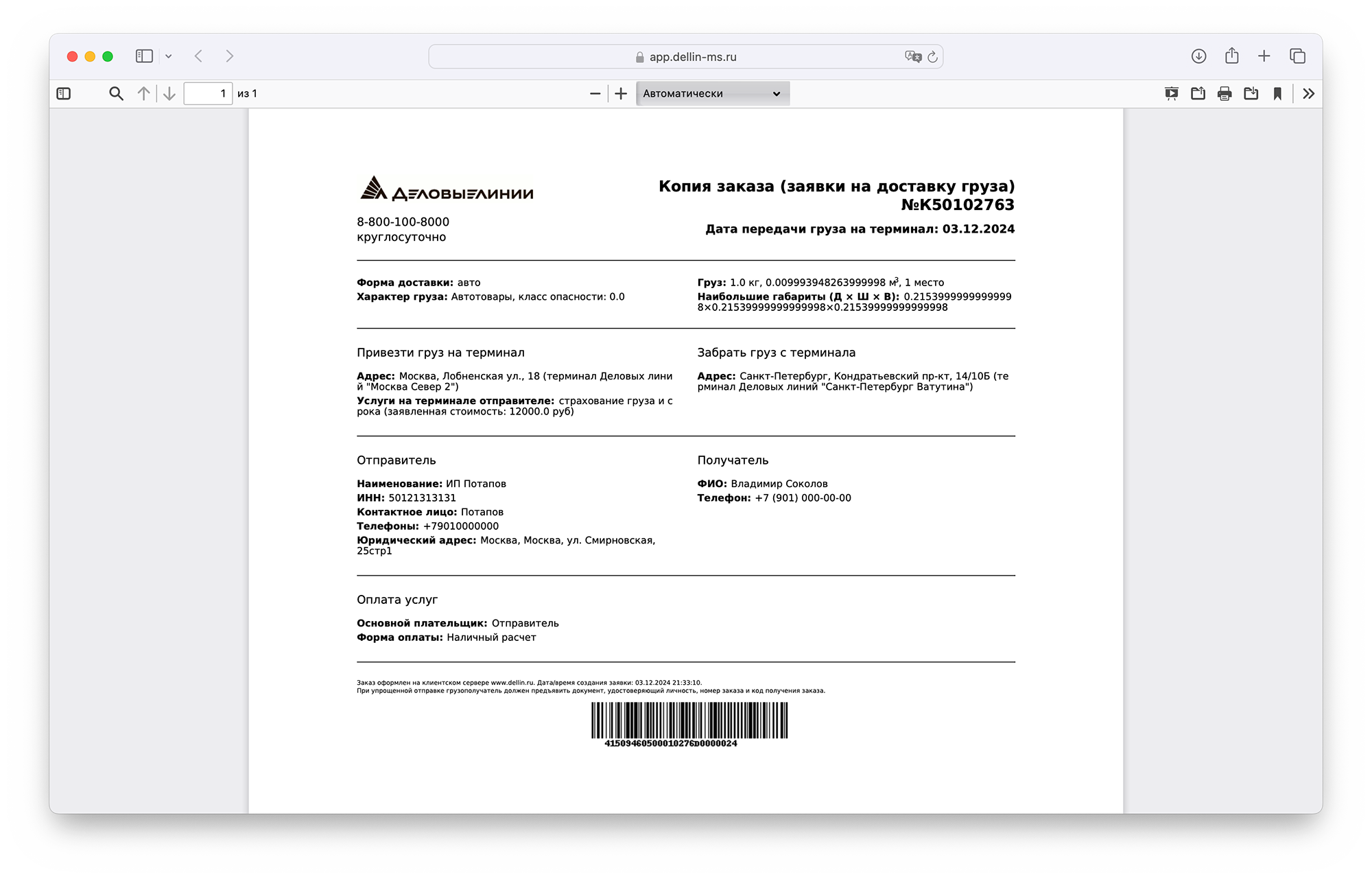 Более подробную документацию вы можете найти по адресу docs.dellin-ms.ru